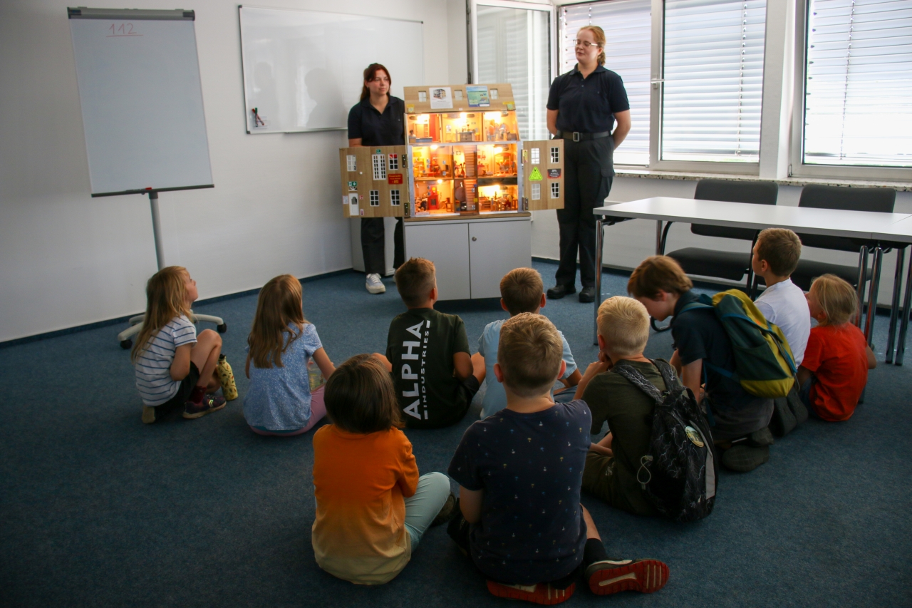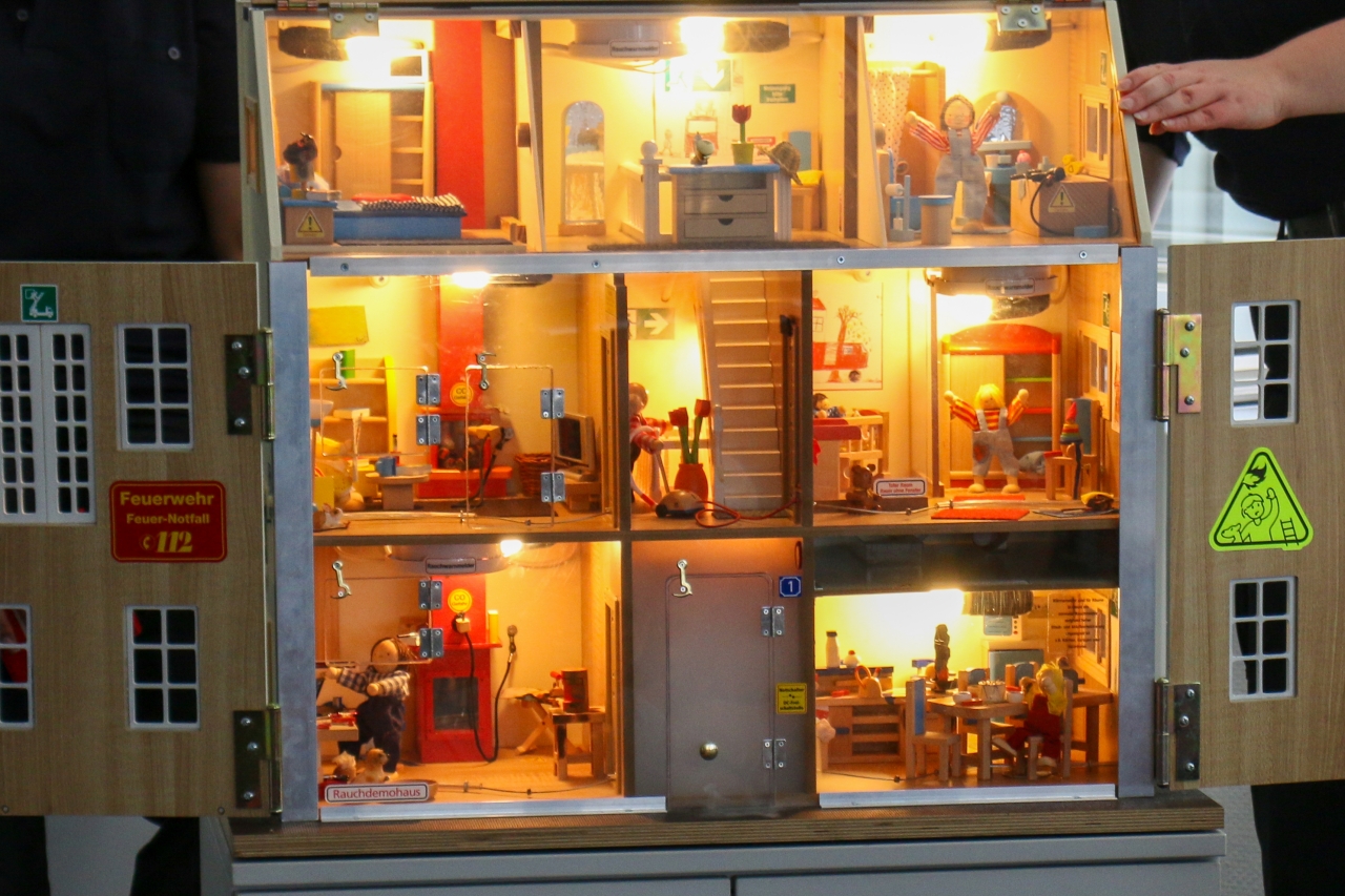 Zu Beginn ging es in den Schulungsraum, wo bereits das sog. Rauchhaus auf sie wartete. Anhand dieses Rauchhauses wurde den Kindern verdeutlicht, wie sich Brandrauch in einem Haus ausbreitet und wie sie sich davor besser schützen können. Außerdem wurde etwas über die Feuerwehr Soest erzählt und besprochen, wofür die Feuerwehr da ist. Wann wähle ich den Notruf und wann nicht. Wie verhalte ich mich, wenn es bei mir brennt.