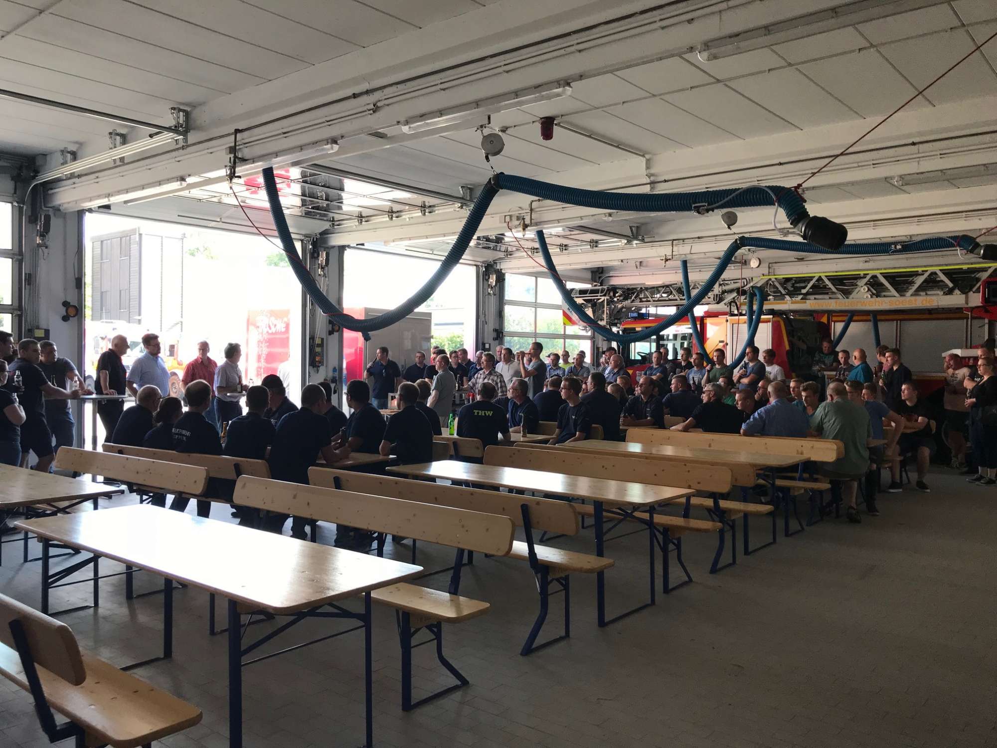 Die Stadt sagte jetzt Dankeschön! und lud zum Grillabend ein. Freiwillige Feuerwehr und Technisches Hilfswerk aus dem ganzen Kreis waren am 1. und 2. Juni in der Stadt im Einsatz, pumpten vor allem abgesoffene Keller leer. „Knochenarbeit!“, erinnert sich Christoph Blume, einer der Chefs der Soester Feuerwehr und an jenem Tag Einsatzleiter. „In der Spitze 500 Einsatzkräfte aus dem ganzen Kreis und aus unterschiedlichen Diensten haben mitgeholfen; so haben wir auch hier in Soest alles abarbeiten können.