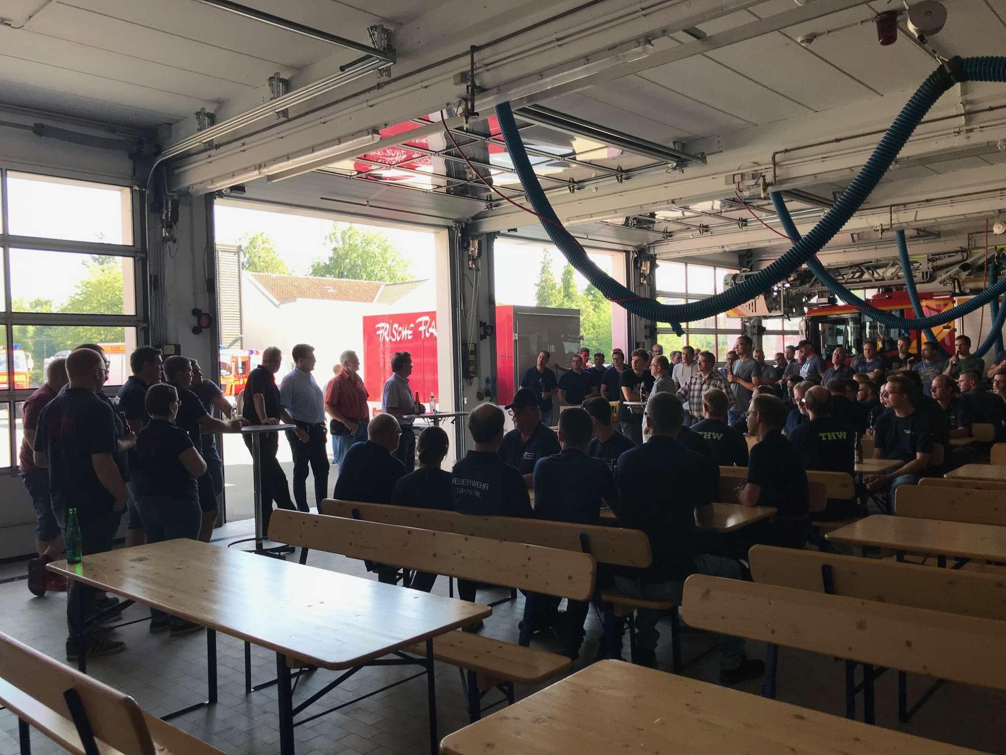 „Erst Sturm Friederike,dann der Brand der Strabag-Halle, und jetzt noch die Schufterei am 1. Juni: Es wurde mal Zeit, besonders Danke zu sagen“, so begrüßte Bürgermeister Eckhard Ruthemeyer viele Freiwillige von Feuerwehr und Technischem Hilfswerk an der Feuerwache am Florianweg.
