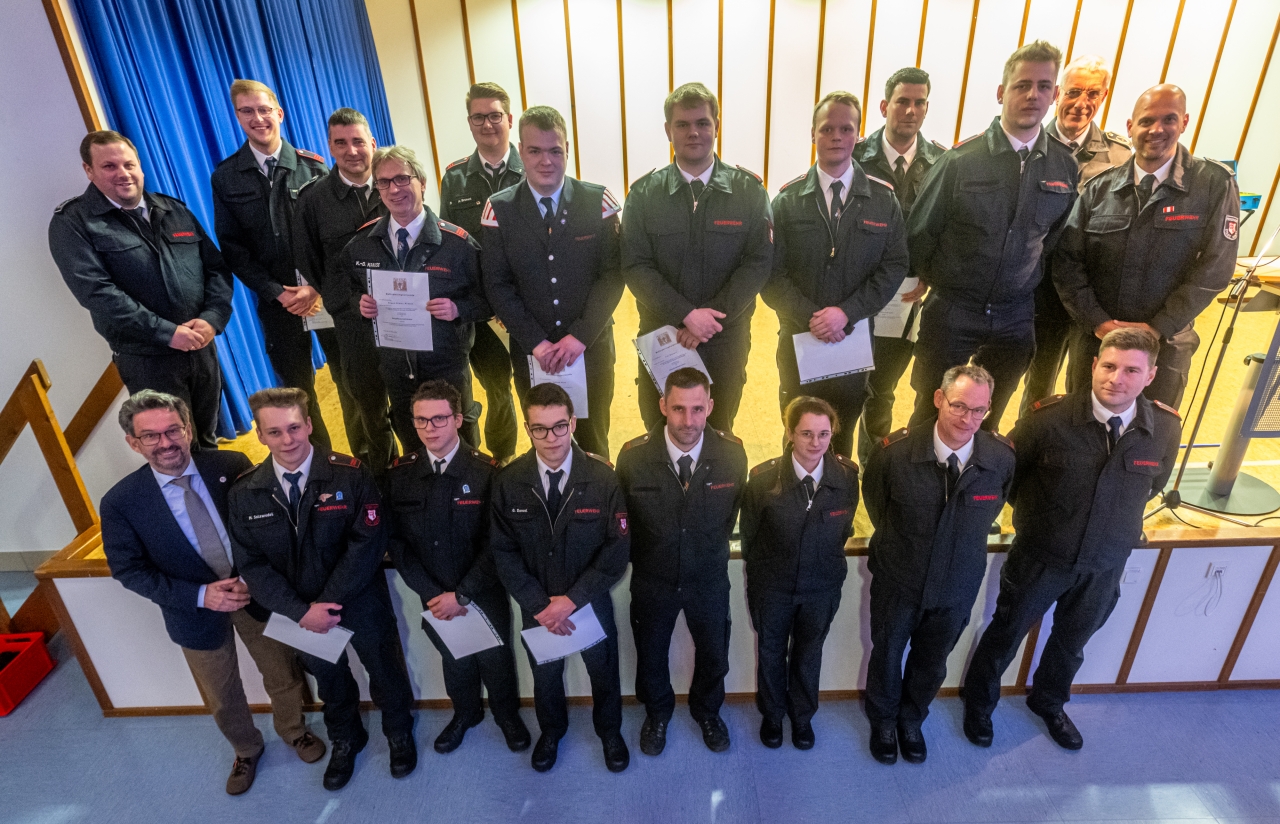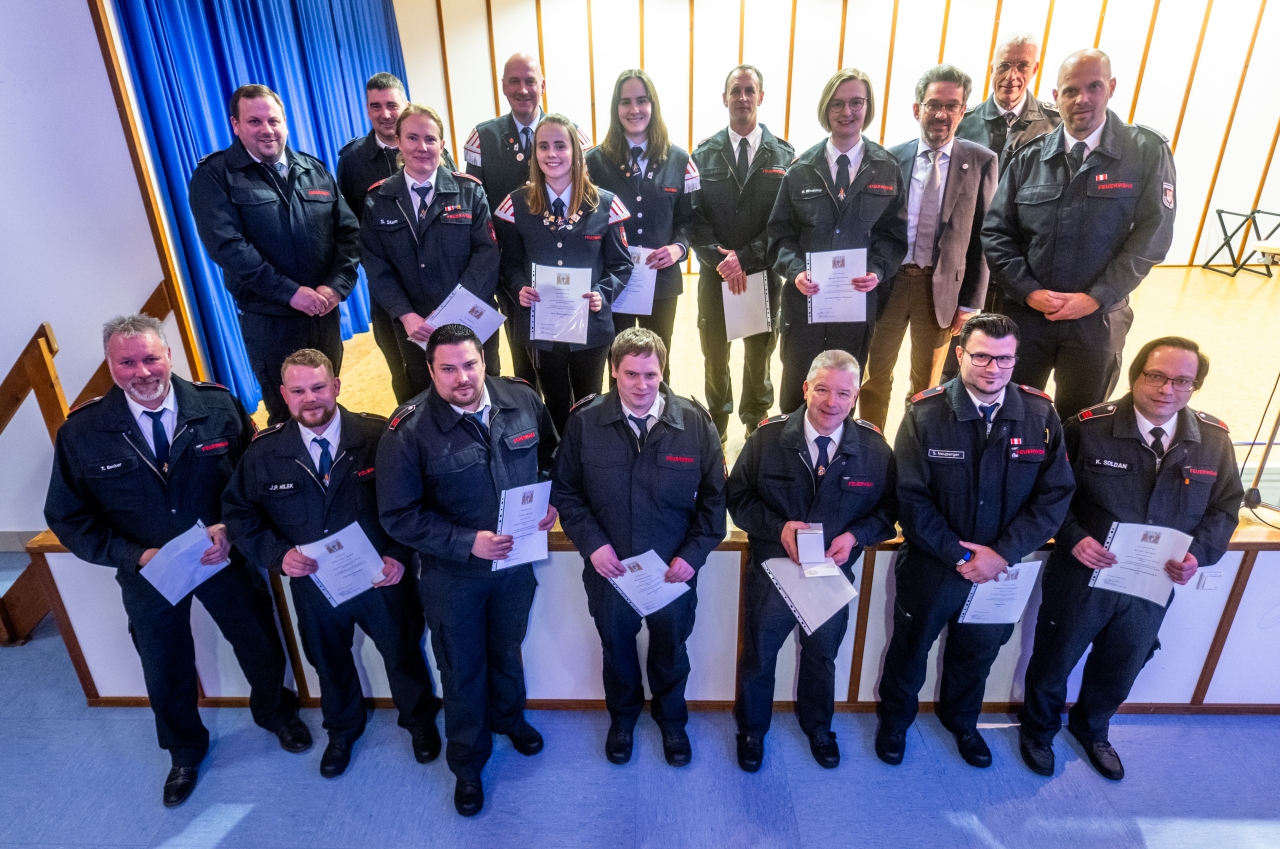 Beförderung zum Oberfeuerwehrmann: Fabian Kappe, Marvin Salzwedel, Fynn Hilgenkamp, Lara Rottwinkel, Christian Voswinckel, Nils Jeuring, Reiner Bröcking, Stefan Wüste, Gustav Danneel, Ida Maria Daners, Celine Vogel, Janette Prolingheuer, Tim Sievert;