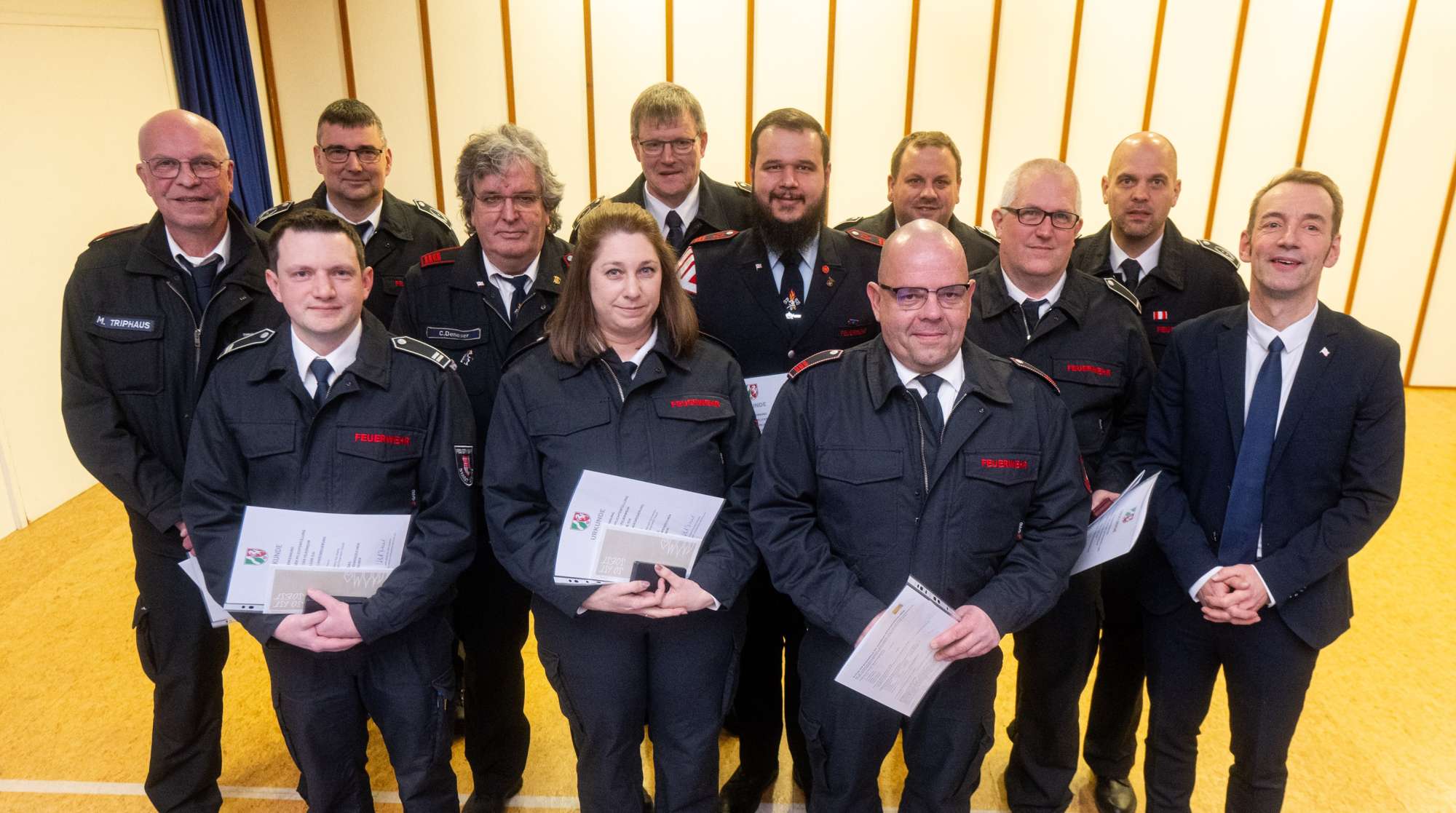 zum Hauptfeuerwehrmann: Marvin Lasar, Simon Kurz; zum Unterbrandmeister: Robin Uebach, Jonas Mattheus, Reiner Bröcking, Jan Ladouceur, Sebastian Neuperger, Lukas Fricke, Thies Klüsener, Jannis Würfel;