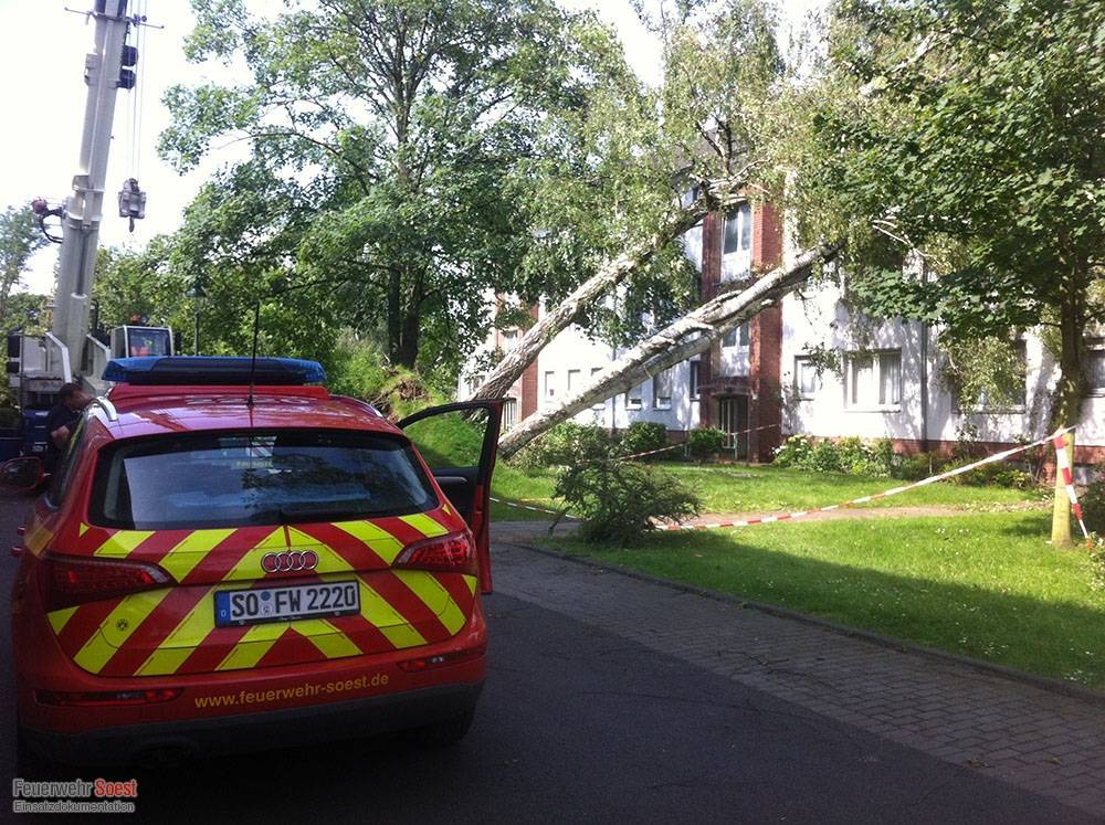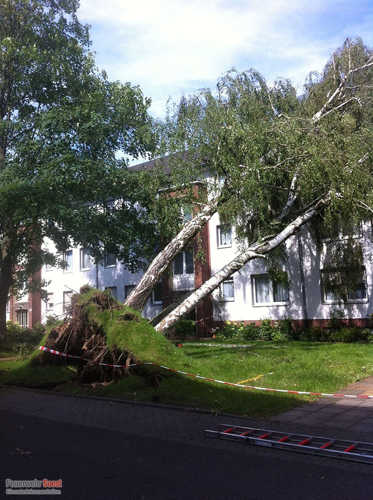 Im gesamten Stadtgebiet kippten Bäume um, lagen lose Äste in Baumkronen, fielen Dachpfannen von den Dächern oder liefen Keller voll Wasser.