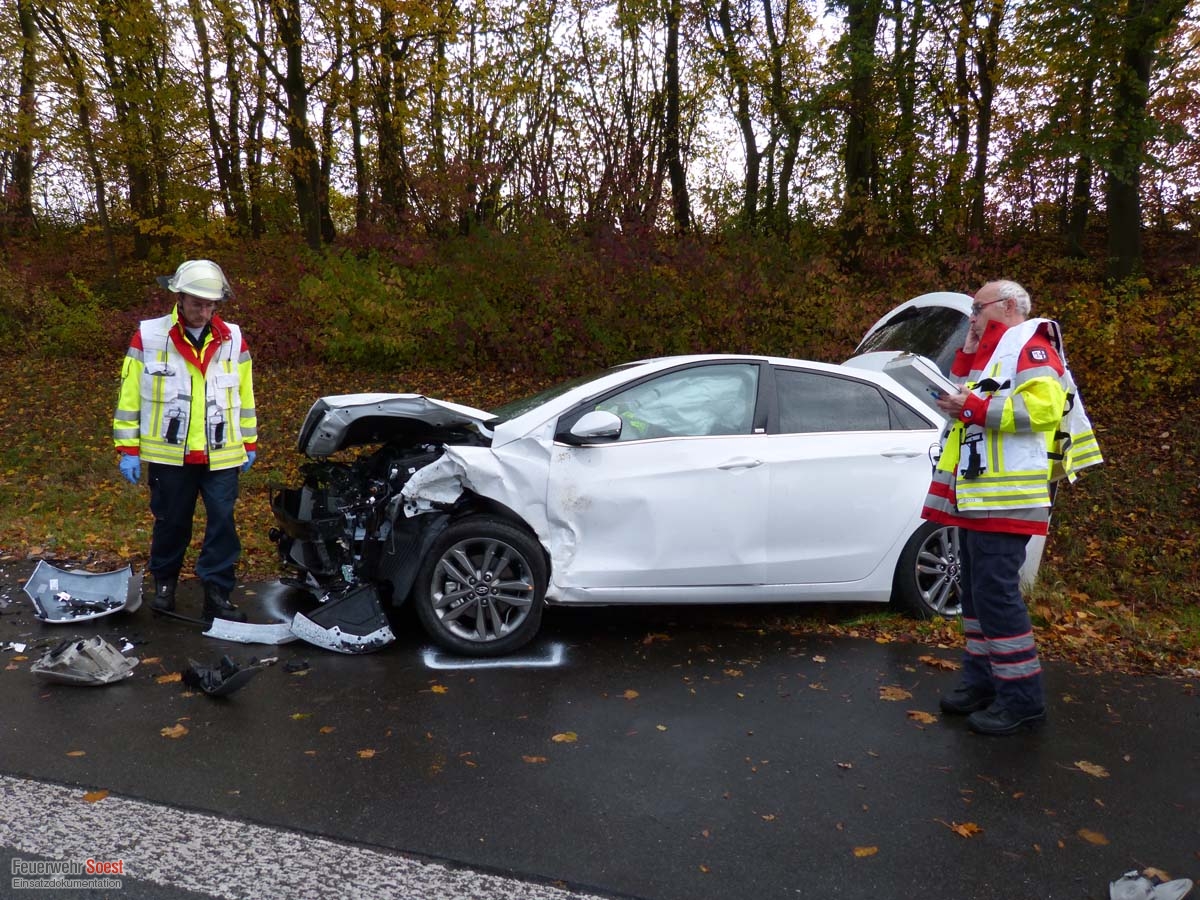 Frotalzusammenstoß zweier Pkw im Bereich der Autobahnauffahrt Soest.Eine Person wurde mit hydraulischem Rettungsgerät aus dem Fahrzeug befreit und dem Rettungsdienst übergeben.