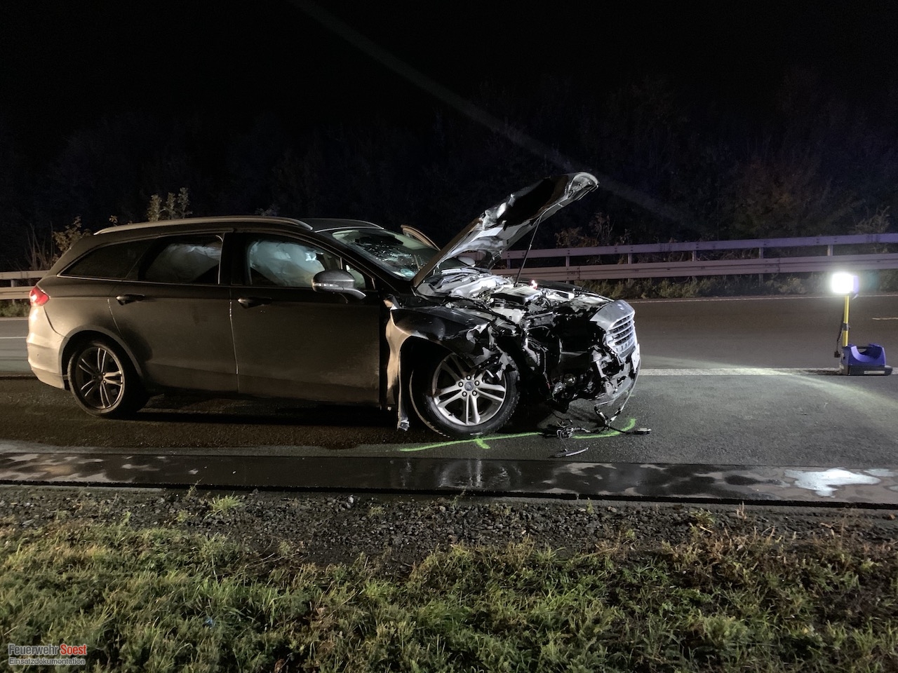 Ein zweiter beteiligter PKW stand einige 100 Meter von der Unfallstelle entfernt auf dem Seitenstreifen. Der Fahrer/Fahrerin des Fahrzeuges war nicht auffindbar. Die Feuerwehr suchte das nahe Umfeld mit einer Wärmebildkamera ab, konnte jedoch nichts finden. Anschließend wurde die Suche durch die Polizei übernommen, dabei kam auch ein Polizeihubschrauber zum Einsatz.