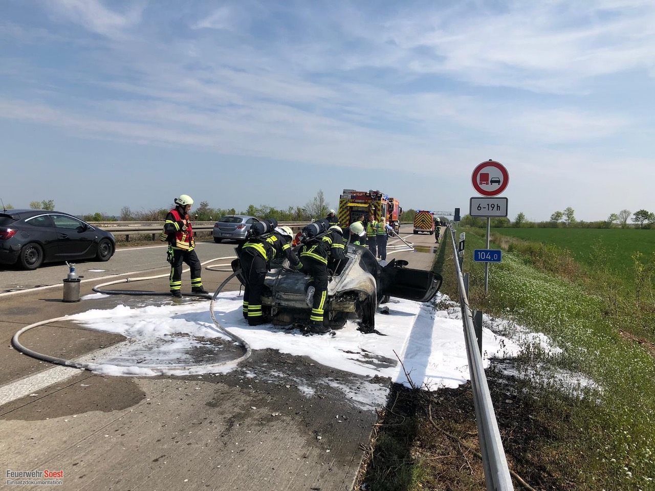 Ein brennender Sportwagen wurde mit einem C-Rohr und Schaummittelbeimischung gelöscht.