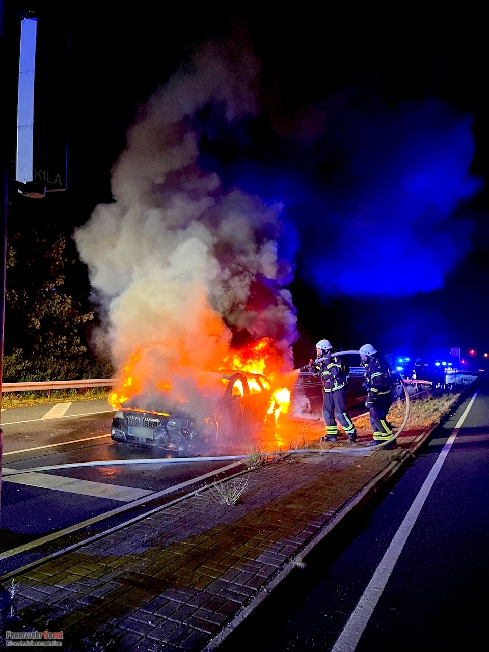 Ein brennender Pkw wurde von einem Trupp unter schwerem Atemschutz abgelöscht.