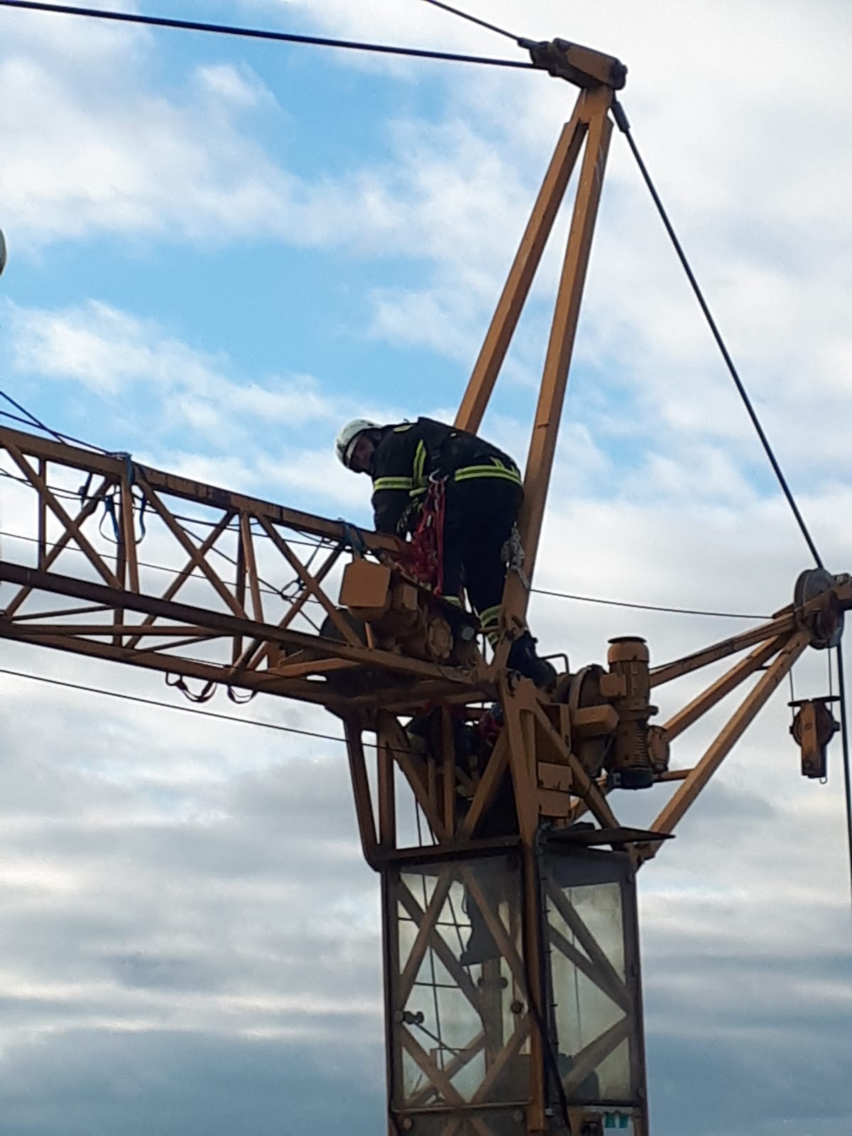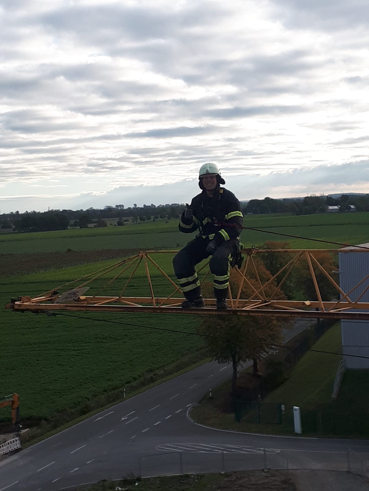 Was war geschehen? Eine Person war in den Kran geklettert und hat sich dabei offensichtlich selbst überschätzt – so lautete das offizielle Übungszenario für die Gruppe Absturzsicherung.