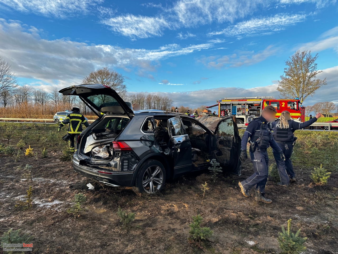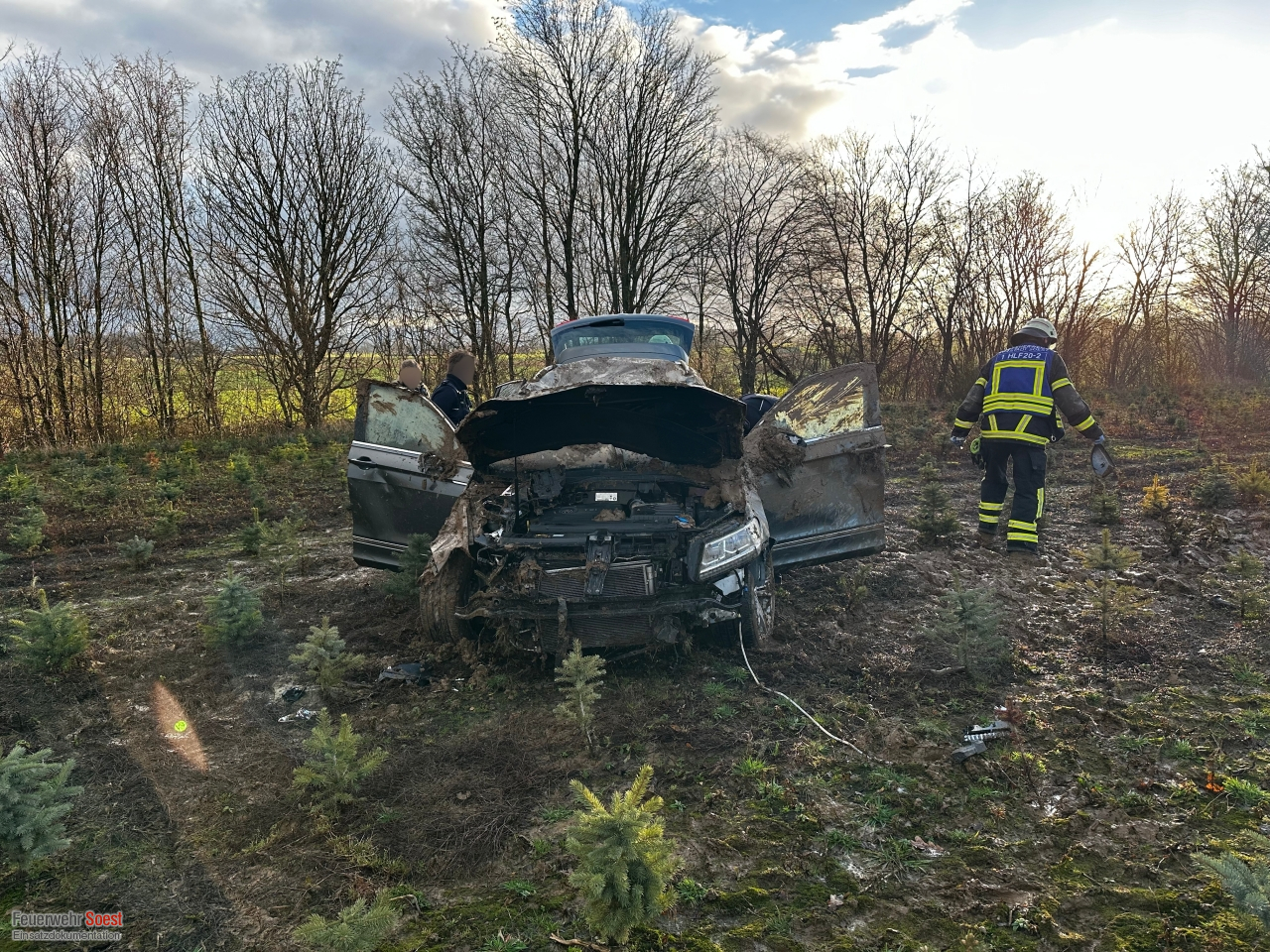Ein Pkw war von der Straße abgekommen und hatte sich auf dem angrenzenden Feld überschlagen. Entgegen der Alarmmeldung war der Fahrer glücklicherweise nicht in seinem Fahrzeug eingeklemmt. Aufgrund der Schwere des Unfalls wurde der Fahrer durch uns so schonend wie möglich aus dem Pkw befreit und an den Rettungsdienst übergeben.
