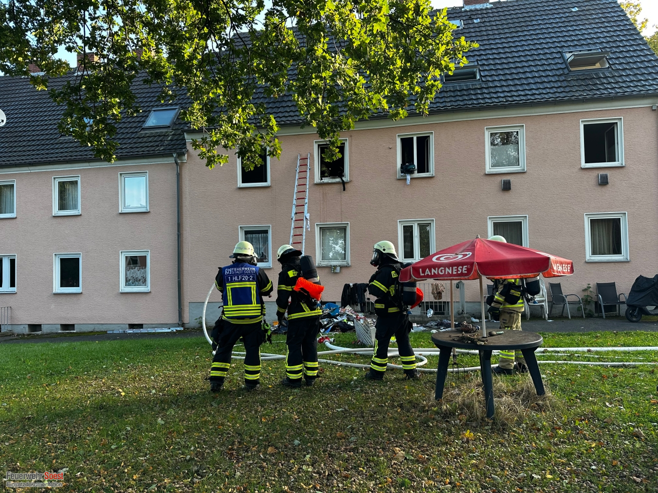 Bei Ankunft an der Einsatzstelle drang bereits dichter Brandrauch aus der betroffenen Wohnung. Da zum Zeitpunkt des Eintreffens noch der Verdacht bestand, dass sich Personen in der Wohnung aufhalten könnten, wurde sofort entschieden, mehrere Trupps unter schwerem Atemschutz in die Wohnung zu entsenden. Während der Such- und Rettungsmaßnahmen erschien der Bewohner der Wohnung an der Einsatzstelle. Er äußerte die Vermutung, dass sich möglicherweise noch eine weitere Person in der Wohnung befinden könnte. Trotz intensiver und wiederholter Durchsuchung der Räumlichkeiten durch unsere Einsatzkräfte konnte jedoch keine Person gefunden werden.