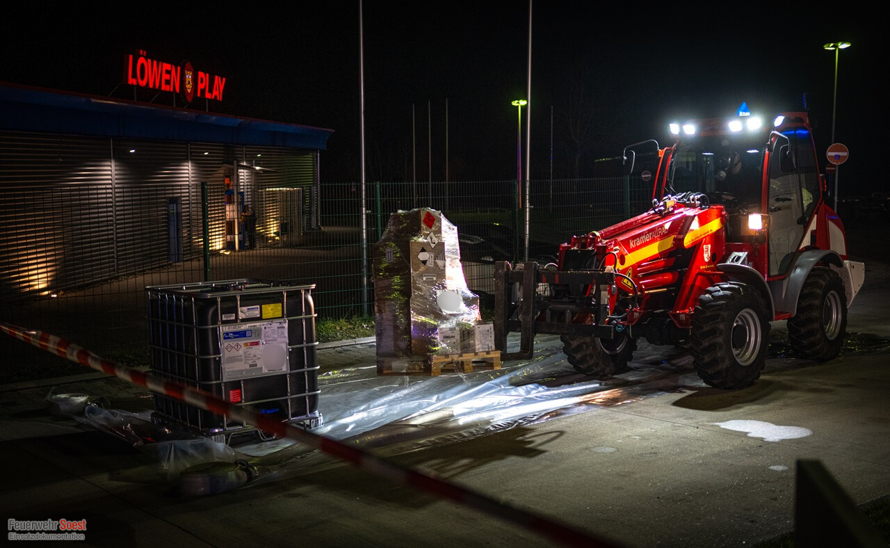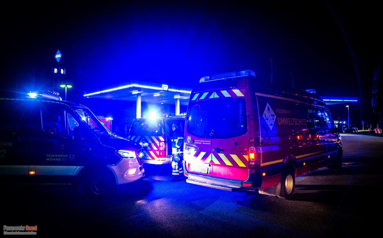 Am Dienstagabend wurde die Feuerwehr zu einem Einsatz im Overweg alarmiert. Aus einem Gefahrgut-LKW trat eine zunächst unbekannte Flüssigkeit aus. Beim Eintreffen begrenzte sich der austretende Stoff auf den betroffenen LKW, der sich im Bereich einer Tankstelle befand. Umgehend wurden Erkundungsmaßnahmen eingeleitet.
